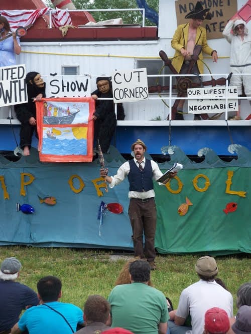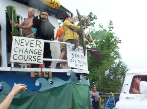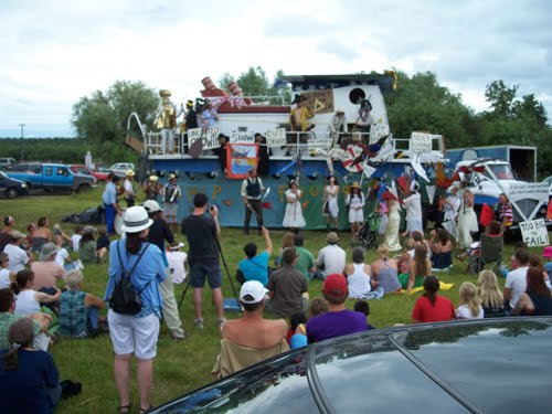 Live Art 2009 Pageant and Parade included 50 kids, 15 Fools, a 10 piece band and a giant houseboat. “Ship of Fools”